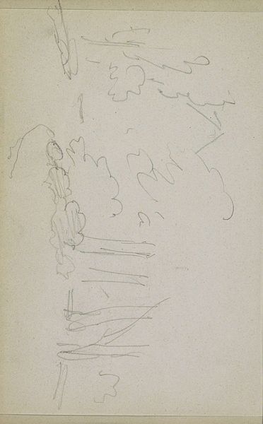 Editor: So, this is "Staande vrouw" which roughly translates to "Standing Woman", by George Hendrik Breitner, sometime between 1886 and 1903. It’s a pencil drawing on paper. It feels like a quick sketch, almost unfinished, but there's something captivating about its simplicity. What do you see in this piece? Curator: What I observe foremost is the starkness of line and form. The artist, Breitner, seems less concerned with mimetic representation, and more with the articulation of space and volume through minimal means. Note the economical use of line; it suggests mass and shadow, without resorting to detail. Editor: Right, it's not trying to be photorealistic or anything. It's very bare bones. Is the lack of detail a comment in itself? Curator: Perhaps. We might consider the work's ontological status – is it a fragment, a study, or a completed work in its own right? The formal elements—the lightness of the pencil work, the composition's placement on the page—contribute to an overall sense of transience, an ephemerality which is conceptually engaging. Editor: So, the incompleteness IS the point. I suppose that transforms the whole viewing experience. Curator: Precisely. Focus on how Breitner uses line weight. Where are the heavier strokes? How do these contribute to your reading of the figure's stance? Ask yourself how the negative space functions. Does it isolate or integrate the figure? Editor: The heavier lines do seem to ground her, defining her torso mostly, and the negative space isolates her... it’s not a comfortable isolation. It’s very stark when viewed that way. Thank you! Curator: Indeed. By examining these formal relations, we unlock avenues of understanding beyond mere subject matter.