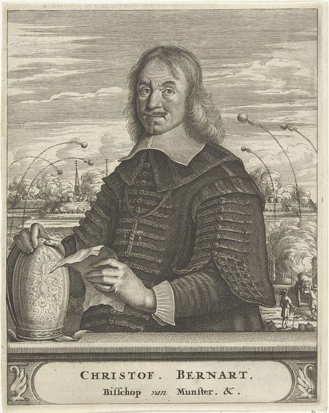Christiaan Lodewijk van Kesteren made this print of Christoph Bernhard von Galen in the Netherlands in the 19th century. It offers a window into the way that powerful historical figures are repackaged for later audiences. Von Galen was the Bishop of Münster in the 17th century and became known for his military campaigns and staunch opposition to Protestantism. The image emphasizes his status through the inclusion of his coat-of-arms and his formal attire. The Bishop’s clothing blends both religious and military elements, reflecting his dual role as a spiritual and political leader. Prints like this one circulated widely, reinforcing specific interpretations of historical figures. The visual codes employed by van Kesteren serve to legitimize power and uphold established hierarchies. To truly understand this work, we can consult primary source documents from the period, such as letters, diaries, and official records, to gain deeper insight into the figure of von Galen. Remember, art is deeply embedded in its social and institutional context.