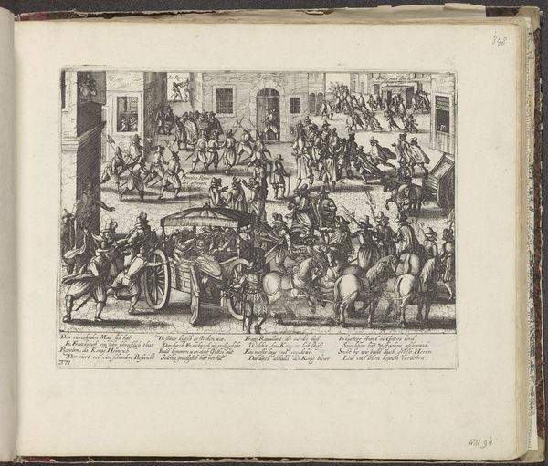 Editor: This is "Januari: een keuken (waterman)", an engraving by Antonio Tempesta from 1599, held at the Rijksmuseum. It looks so busy! All those figures in the kitchen… like a Renaissance fever dream. It is incredibly detailed, but quite overwhelming. What stands out to you most in this piece? Curator: Ah, yes, it's bursting with life! For me, it's the story that Tempesta is telling, frozen in ink. Consider it a snapshot, not just of a kitchen, but of a whole social order at meal preparation, or what a wealthy household expected for food. Each figure seems absorbed in their task, almost theatrically so, don't you think? Editor: Theatrically? In what way? Curator: Well, look at the drama of it all! The bustling activity, almost a stage filled with players each assigned their part, their movements and gestures seem to invite the eye and even have meaning embedded. It's more than just factual, wouldn't you agree? Perhaps each action performed is not random, it’s performative as an homage. Editor: I see what you mean. It feels more constructed than observational, then? More like an imagined ideal? Curator: Exactly! It’s interesting to consider what he might want to portray and why. By observing how the actions performed, the costumes worn, one has an understanding of hierarchy and maybe even how this has evolved to this point and time in history! What do you suppose might the relationship of Tempesta with the Medici family influence how he composed this scene? Editor: Good point! Looking at it that way, I suddenly notice new things I hadn't before. Thanks. Curator: Likewise. Art reveals itself in layers, each observation enriching our perspective.