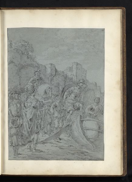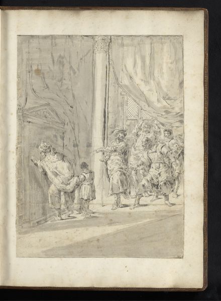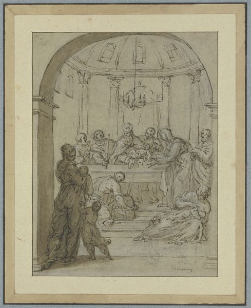Editor: This is a drawing called “Death of Alexander the Great” by Leonaert Bramer, made around 1655 to 1665 using graphite, pen and ink on paper. It's such a flurry of motion depicted with monochrome lines. What stands out to you about it? Curator: Immediately, the public reception of historical narratives comes to mind. Bramer presents a theatrical Alexander, dying surrounded by concerned figures, and it reminds us how historical figures are constantly being reimagined. What does Alexander's death *mean* in the mid-17th century, and how is Bramer shaping that meaning? Editor: A reimagining of a powerful, long-gone figure... How might the political climate have influenced the portrayal? Curator: Precisely. The Baroque period, rife with courtly drama and power struggles, found parallels in Alexander's life and death. Bramer’s crowded composition, full of expressive gestures, taps into the emotional intensity that rulers at the time cultivated around themselves. Note how his composition, for instance, stages this intimate event almost like a public spectacle. Do you see how that reflects a desire for the monarchy to control even death narratives? Editor: It’s a striking observation! There’s that contrast again—a private moment made public. It almost feels like propaganda, subtly shaping how the public perceives power and legacy. Curator: Exactly! It provokes questions about the role of art as a tool for projecting power. And beyond courtly contexts, we must also consider how such representations reflect the Dutch Republic's own political ambitions at the time. These seemingly "historical" scenes really were being made for contemporaries. Editor: I never considered how the present political desires are baked into historical renderings of that time. That has really changed my perspective. Curator: Mine, too. The intersection of art, power, and public perception keeps things endlessly fascinating!