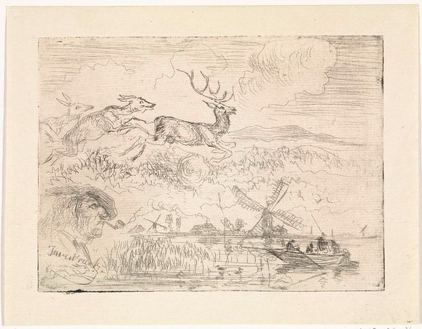 Editor: This watercolor drawing, titled "Pronghorn" by Charles M. Russell, dates back to 1894. It strikes me as both peaceful and a little lonely, with those gentle colors depicting a vast, almost empty landscape. What draws your attention when you look at this piece? Curator: Initially, the composition itself arrests my attention. Notice how the arrangement of the animals creates a subtle rhythm. The standing pronghorn acts as a focal point, drawing the eye upward, and then we descend back into the herd. This is further emphasized by the careful use of color: a muted palette, yes, but one where the limited contrast isolates the prominent figure from the broader mass of figures to the left and in the background. Does this manipulation serve the greater picture, or undermine it? Editor: It’s true, the arrangement definitely guides your eye. But what about the landscape itself? It's so subtly rendered. Curator: Precisely. It's a backdrop, yes, but consider how the brushstrokes, particularly in the rendering of the plains, are gestural, almost impressionistic in their brevity. This flatness reinforces a certain formal elegance. The artist is interested in surface, in the interplay of color and line, and not a documentary transcription of the landscape, right? Do you find that these structural components enhance or detract from the narrative, whatever that may be? Editor: I think it pushes you to focus more on the immediate scene and less on a grand narrative. The painting’s power is in the simplicity of the present moment. Curator: I am compelled by that statement. It prompts a closer examination of form and the deliberate choices of Russell to create such an experience. Editor: Exactly! Seeing how he composed this piece has totally changed how I viewed the art in general. Curator: It has provided insight for us both.