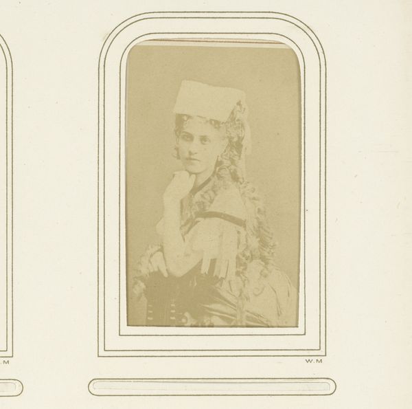 Curator: Let's turn our attention to this fascinating photograph, "Portret van Adele Isaac," dating from between 1860 and 1880. It’s rendered through the photographic medium, a relatively new technology for portraiture at the time. Editor: There's a wistful air to this profile, don't you think? The soft sepia tones give it a dreamlike quality, almost as if we’re gazing into a memory. Curator: Indeed. These early photographs were meticulous and labor-intensive, requiring careful attention to lighting and posing. Each print was a unique artifact, reflecting the photographer’s skill and the sitter’s social standing allowing them such luxuries as getting one's portrait taken. I can imagine the hours dedicated for each sitting and careful material handling needed to produce these photographs at that time. Editor: And think of the conscious choices! Adele Isaac sports a lovely flower in her elaborately arranged hair, paired with a necklace holding a pendant with another small portrait— a miniature of perhaps a family member. She is intentionally positioning herself. The symbolism there is compelling—linking to beauty, family, status... Curator: Absolutely. This portrait speaks to a desire for documentation and social display in a world increasingly shaped by industrial production. The materials, the paper stock and the printing methods represent a specific historical moment. There must have been several workers from manufacturers to distributors handling this carte de visite to enable this picture to circulate as widely as possible. Editor: But look closer— that necklace and that flower also reveal something of her personality, perhaps a delicate sensitivity, an inclination towards the sentimental. We, looking at it now, automatically attempt to 'decode' the composition and construct our version of Adele Isaac in our minds. Curator: It truly allows you to reflect on the rapidly shifting technological landscape, it represents the labor necessary to produce and maintain these photographic records that allow us to still view them today. Editor: And consider how, through the very act of photographing and framing her, an image is constructed that we now ponder centuries later—an enduring symbolic act. It allows for reflection on time and memory. Curator: Thank you, with both those points in mind, perhaps this image reflects the complicated shift to modernization by immortalizing a past moment. Editor: I concur. Perhaps the essence of what draws us in after all these years lies in its very enigmatic charm.