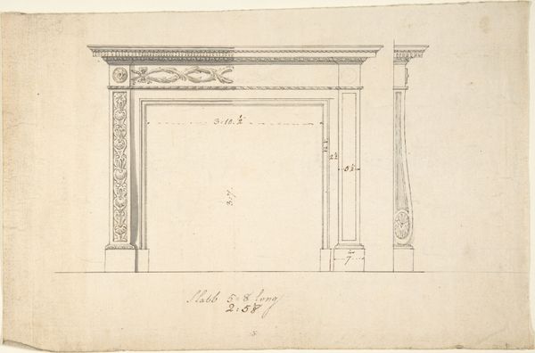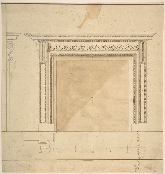 Sir William Chambers, a towering figure in British architecture, rendered this chimneypiece design in pen and ink, likely in the latter half of the 18th century. It offers a fascinating window into the aesthetic sensibilities of the Georgian era and the institutional framework that shaped them. Chambers' design, with its classical proportions and ornate detailing, speaks to the prevailing taste for Palladianism and the broader Neoclassical movement. This style, promoted by institutions like the Royal Academy, where Chambers served as treasurer, sought to revive the grandeur of ancient Greece and Rome, reflecting Britain's growing imperial ambitions. The chimneypiece, more than just a functional object, served as a focal point of social display, symbolizing the wealth and cultivated taste of the homeowner. Through studying architectural drawings like this one, alongside period treatises and accounts, we can better understand how the built environment reinforced social hierarchies and projected cultural values in 18th-century Britain.