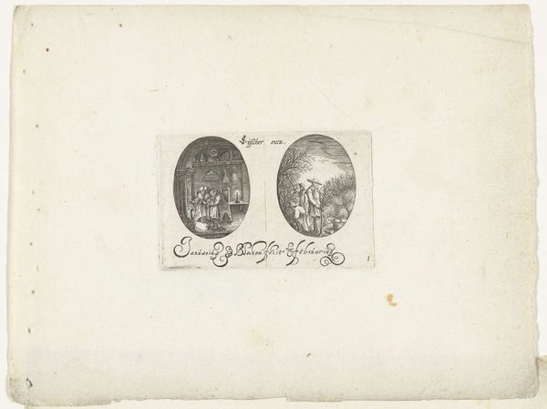 Bartholomeus van Lochom created these oval medallions of March and April using etching techniques. The compositions are contained within small ovals, each a microcosm of seasonal activity. Notice how Lochom uses line and form to convey depth and texture, with stark contrasts between the foreground and background to focus your eye on the figures and their activities. In "March," the figure strides across the field, set against a landscape defined by bare trees and linear furrows. The scene is constructed to explore the relationship between man and nature, where the human figure actively engages with the land. In "April," the figures are set back, behind a fence, in a stark contrast to the first image. The artist employs a semiotic language typical of seasonal allegories, using visual cues that invite us to interpret their symbolic values. The medallions are not merely decorative, but actively engage with cultural codes around time, labor, and the human relationship with the natural world. Through its structural contrasts and symbolic density, Lochom's work challenges fixed meanings, prompting ongoing interpretation.