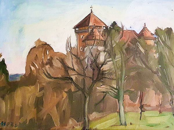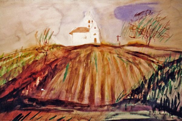 Maria Bozoky created this watercolor painting, Village in West Hungary, using materials that are modest and immediate. Bozoky worked with the fluidity and translucence of watercolor and ink, allowing them to bleed and merge across the paper. The washes of color create an atmosphere of somber reflection. The thinness of the paint allows the white of the paper to shine through, giving the image a ghostly quality. The marks feel spontaneous, almost as if the scene were captured in a fleeting moment. This effect is enhanced by the artist's visible brushstrokes, revealing the trace of the maker's hand. In this painting, Bozoky draws attention to the weight of tradition, the melancholy mood is reflected in the application of the materials. The modest materials contribute to the artwork's humble and intimate nature, and its social context. By considering materials, processes, and context, we can gain a richer understanding of this compelling painting, further enriching the distinctions between fine art and craft.