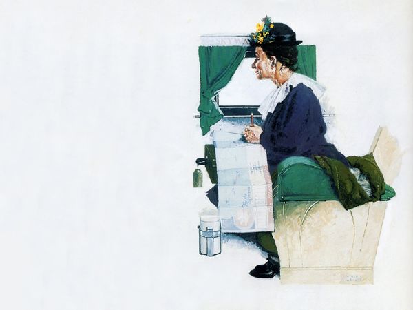 Curator: Daniel Greene painted this, the title is "Guida – Astor Place." Something about it draws me right in... like a faded photograph I've found in a drawer. Editor: The word that springs to mind is "wistful." She’s there but not really. This almost antique sepia tone reinforces the atmosphere of the underground: urban, slightly faded, almost forgotten. Curator: Right? I find it very New York, almost a scene snatched from life. It’s just this young woman, seemingly caught in a quiet moment at Astor Place station. You can practically smell the city grit in the air. What visual details catch your eye? Editor: Those walls. The tiles around her could represent all the cultural symbols the subway platform holds. The small tesserae mosaic tile reminds me of early Byzantine Christian symbols in their original mosaic placement. You find it, even here, a fragmented past among these modern lives and commutes. I find that really curious. Curator: It's intriguing how Greene captures her stillness against this very graphic background; she appears so composed amidst this chaotic public space. Almost self-aware. Does her positioning suggest to you something iconic? Is there a dialogue she has with her surrounding in terms of symbolism and urban iconology? Editor: The angle certainly makes me think she could be aware that someone’s staring at her. Maybe even that someone is also the personification of our modern commuting lives? But you know, that bag gives off this immediate bohemian aura that reminds me a lot about that place! I like her gaze, too. Does she carry the burden of this underground experience or is she liberated by it? That, for me, remains an open question, as all art should. Curator: Exactly! Greene seems to leave these doors slightly ajar for our imaginations to fully step in. The choice of medium too...the textures achieved with the acrylic paint, don’t you think, it adds this fascinating layer to the overall sensory impact of the painting? I mean it's quite clever! Editor: Yes, completely agree. These small details are an entry point to experience a feeling. Curator: I feel her quietness. Maybe Greene wanted to catch a moment, suspend it, and examine that closely. That feeling… that little slice of experience. Editor: Indeed. The quiet beauty that lies just beneath the surface of a city's hectic energy. I am captivated by the potential narratives embedded within this image, that evoke an aura of memory and symbolism in such a relatable way.
