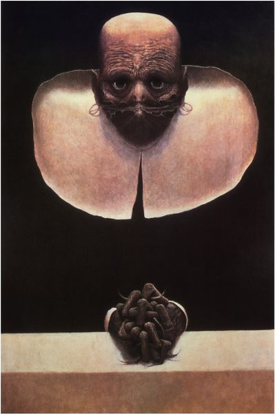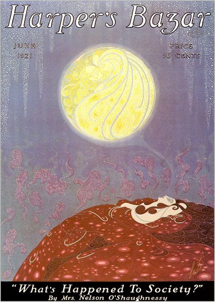Editor: This painting is entitled "Heat" by Erte. While its creation date is unknown, it strikes me as both intensely vibrant and somewhat melancholic. There's a distinct Art Nouveau style at play, with the swirling lines and decorative elements. I’m curious, how do you interpret this work, especially with regard to its symbols? Curator: The symbology is quite rich. Notice how the female figure merges with the tree. The tree, of course, is a universal symbol for life, growth, and connection to roots. But Erte goes further. Editor: In what way? Curator: Consider the orange and purple color palette. Orange is often associated with warmth and vitality, hence “heat," while purple suggests royalty, spirituality, and even mourning. Look at the cascade of leaf-like forms… are they truly leaves? They might also be interpreted as tears, suggesting a cycle of shedding and renewal. How does that strike you? Editor: Interesting! The leaves as tears gives a much deeper meaning to her mournful pose. The figure seems almost trapped within the tree's embrace, both protected and confined. Is that tension a recurring theme in Art Nouveau or Erte’s work in general? Curator: Absolutely. There is often a play between the beautiful and the decadent, a fascination with mortality veiled by ornate aesthetics. The circular frame, a type of mandala, also represents completeness and containment, further emphasizing the duality between inner peace and external pressures. The visual is mesmerizing, but what is her emotional state? Editor: I'm starting to see it all as more than just a decorative image. It’s a reflection of internal struggle, masked by beauty. The image certainly captures something primal. Thank you. Curator: Indeed. And sometimes a second look is all we need to open our eyes.