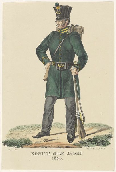Willem Charles Magnenat made this print of a Dutch volunteer rifleman, or Jager, using etching and engraving techniques. The image speaks to the transformation of warfare during the Napoleonic era. With it came a shift in social structures in the Netherlands. The Dutch Republic had fallen in 1795, replaced by the French-controlled Batavian Republic, then the Kingdom of Holland, before finally being incorporated into the French Empire. This print likely dates from the period after Napoleon's defeat in 1815 when the Netherlands regained independence as a constitutional monarchy. It suggests how traditional hierarchies were being supplemented by a new kind of military service based on citizen volunteers. The image provides insight into the reshaping of Dutch national identity in the wake of French occupation. Military uniforms and regalia, as documented in prints such as this, helped construct that identity, and we can research the history of those uniforms through period military records. What did it mean to be Dutch at this time? The answers are contingent on these kinds of social and institutional contexts.