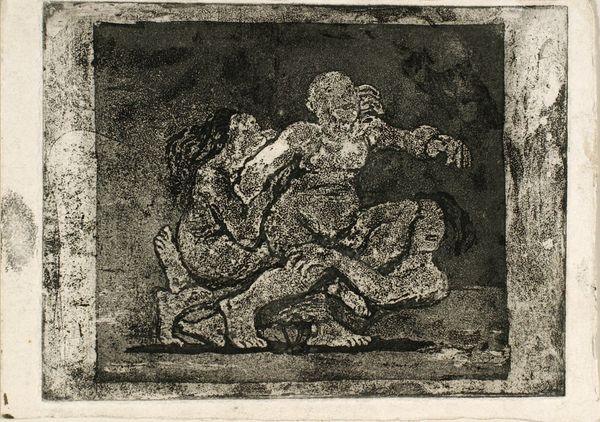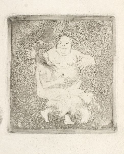 Oluf Hartmann made this small print, “Two Women Fight Over a Man,” sometime around the turn of the last century. The way he's worked the plate, it's all about moody darks and luminous lights, a dance between what's revealed and what's hidden. It's like he's digging into the metal, letting the process speak. The physicality here is striking. The textures are so raw, almost like you could reach out and feel the scuffle. See how he's built up the figures from a mass of tangled lines and tones, so they look like they're emerging from the darkness? Notice the face of the woman on the right, her features are obscured in the shadows yet her outstretched arm is full of tension. It reminds me of Käthe Kollwitz, who knew how to make anguish palpable through mark-making. There's something beautifully unresolved about it. Hartmann isn't giving us answers, he's just showing us the messy, complicated nature of human desires.