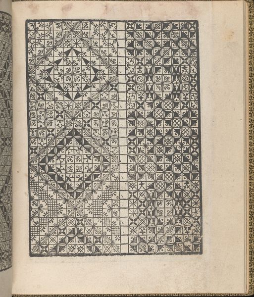 This is a page of "Ornamento delle belle & virtuose donne", an etched book by Matteo Pagano from 16th century Venice. Here, potent symbols, steeped in historical weight, present themselves: crosses, geometric grids, and floral rosettes dance across the page. The cross, an ancient symbol of sacrifice, transcends its Christian origins, echoing pagan sun-wheels and ancient crossroads. In antiquity, the grid symbolized order and control over chaos. And rosettes, blooming in various guises, appear as primordial symbols of life and cyclical renewal. Consider these motifs, echoing through time. These patterns reappear in Minoan labyrinths, Gothic cathedrals, and even in modern Op Art. How do these symbols, encoded in our cultural memory, elicit a response when we see them repeated? It is as if the artist has tapped into a deep psychological wellspring, inviting viewers to partake in an almost ritualistic engagement with form and memory. Observe how these symbols evolve, adapting to cultural shifts. The same cross, once a pagan emblem, now adorns Christian churches. These symbols are like rivers, carving new paths, yet forever flowing from the same source.