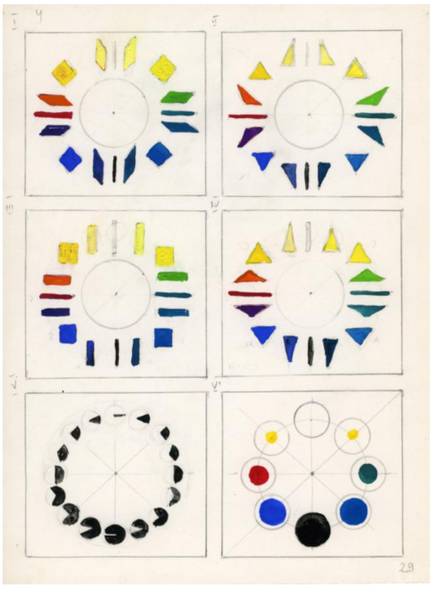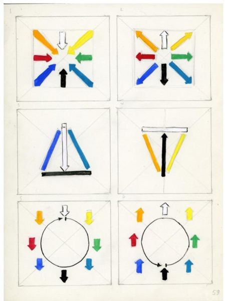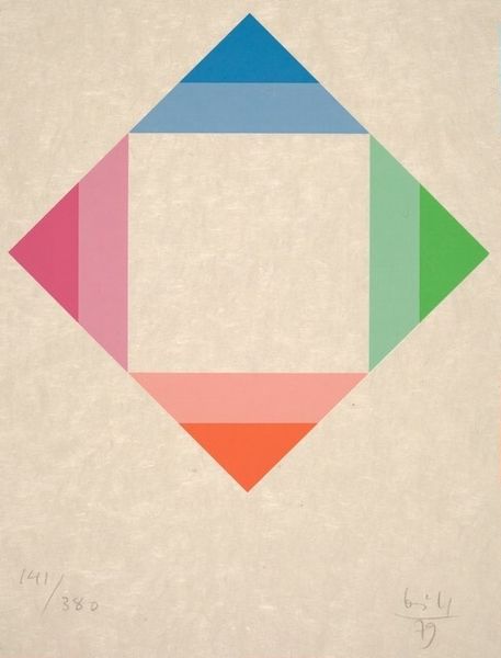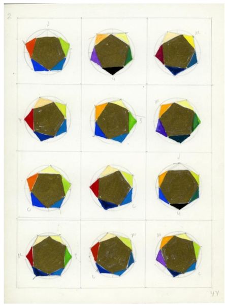 Editor: So, here we have Valerii Lamakh's "The Fourth 'Book of Schemes'. Album #1, the Third Folder," from 1978. It looks like watercolor and pencil on paper. My first thought is how ordered and almost scientific it feels, but with these vibrant colours bursting from each shape. What's your take? What do you see when you look at this? Curator: Well, given that Lamakh was working in Soviet Ukraine, I immediately look to the conditions of artistic production. The "schemes" in the title suggest a system, almost an engineer's approach. We might consider this work a record of process, less about individual expression and more about the arrangement and interplay of form. Editor: A record of process… that’s interesting. Does that push back against what was typically considered fine art at the time? Curator: Precisely! The materiality – humble paper and watercolors – combined with the systematic, almost repetitive arrangement, challenges traditional hierarchies. He's elevating the act of making, the investigation of geometric relationships, over any narrative or symbolic content. Notice how the grid itself, a tool for organizing the page, remains visible. It reveals the underpinnings of the whole system. Editor: So, he's showing us the nuts and bolts, so to speak. Is he commenting on labor through the visible, repetitive process? Curator: Absolutely. And by doing so, he asks us to reconsider what constitutes "art" in a society often obsessed with the final, polished product. What is gained, or lost, by prioritizing the raw components of creation? Editor: I hadn't thought about it that way. Seeing it as a commentary on artistic labor within its socio-political context…it gives it so much more depth. Thank you! Curator: Indeed. It forces us to examine our own assumptions about value and the processes that underpin creative endeavors.