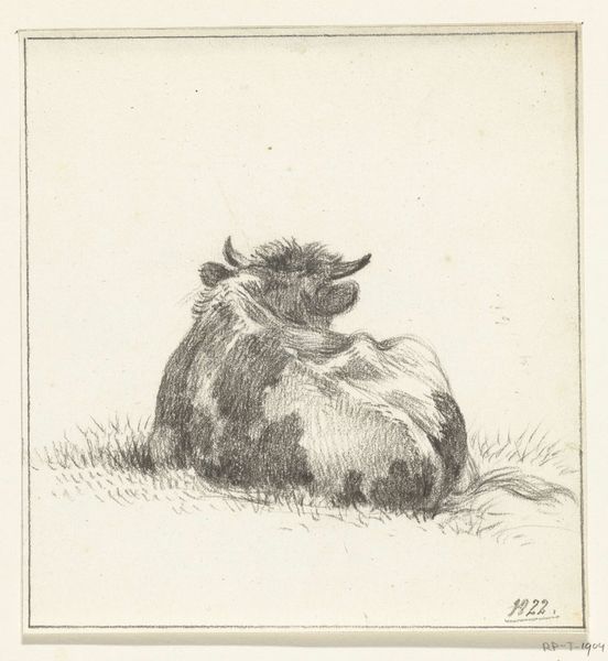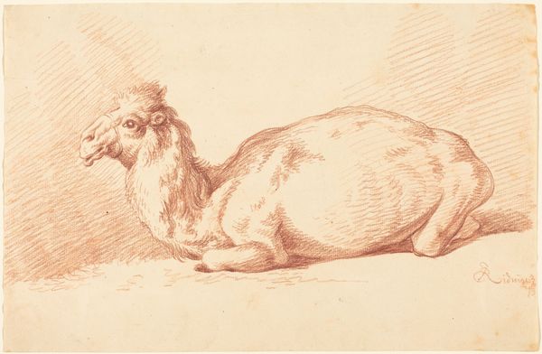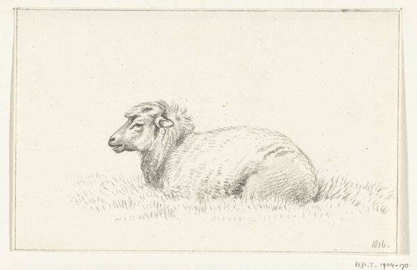 Hendrik Schouten made this drawing of a ‘Liggend schaap’ or lying sheep, with pen in 1809. The Dutch Golden Age of painting in the 17th century saw artists like Paulus Potter elevate farm animals to the status of history painting, reflecting the economic importance of livestock in the Netherlands. By the 19th century, though, this heroic vision of agrarian life had waned. Schouten’s image seems to return to the pastoral themes, but something is lost in translation. Note how the sheep, which is the central subject in the artwork, faces away from the viewer. This could be seen as the artist not wanting the viewer to connect with the sheep on a personal level and creating a formal statement instead. To understand the historical context better, one might consult agricultural records, art market data, and contemporary exhibition reviews. All these resources could reflect on the social and institutional dimensions of Schouten's art.
