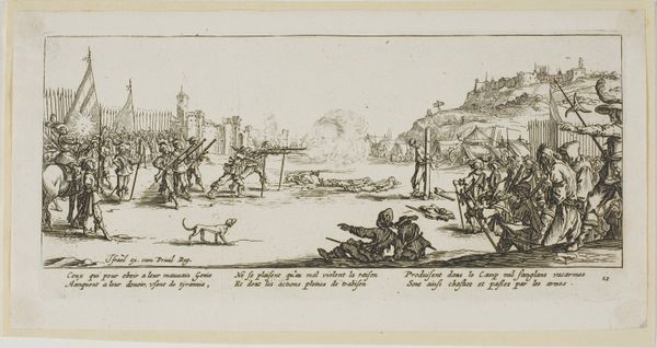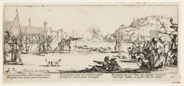 Stefano della Bella created this print, Plate Seven from Various Embarkments, sometime in the mid-17th century. Della Bella was a prolific printmaker in Baroque Italy, and this etching exemplifies his interest in the theater of state. The image depicts a ship, likely a warship, being loaded with men and supplies, with a fortress in the background. To understand this image, we must consider the political and economic context of its creation. Italy at this time was not a unified nation but a collection of city-states, each vying for power and resources. Maritime trade was also a key element of Italian power. Della Bella made many prints for wealthy patrons, including the Medici family. Images like these were part of how they promoted their power. The print isn't just a picture; it's a statement about Florentine power and its place in the world. To truly understand this work, we can consult historical records, letters, and other documents to reveal the complex social forces that shaped its creation.