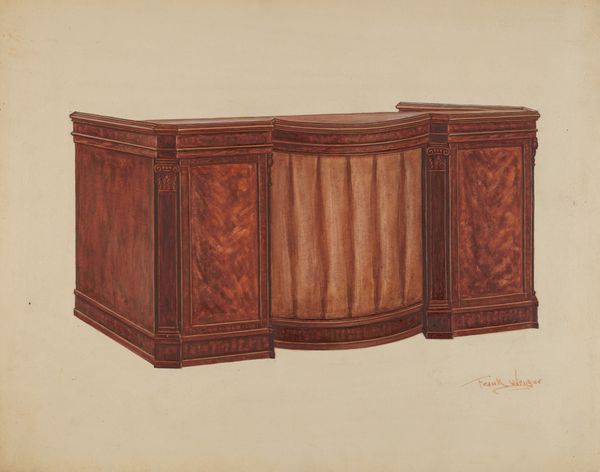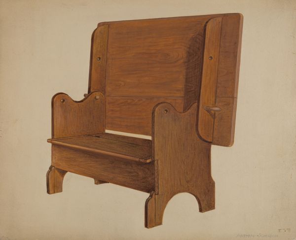 Harry Eisman made this drawing of a Settee, sometime between 1855 and 1995 using watercolor, graphite, and maybe a little bit of ink. It’s a real celebration of the basics – lines, shapes, and the way light plays on a surface. Looking closely, you can see how Eisman builds up the form of the settee with layers of transparent washes. It's like he’s letting the light itself define the curves and edges of the wood. Notice the dark graphite lines tracing the edges of the panels on the back of the settee. They're not just outlines; they give the whole piece a sense of depth and definition. This drawing reminds me of the precision of Agnes Martin, but with a warm, homely touch. It shows how much can be expressed through careful observation and a love for the materials. It’s not just about representing a settee; it’s about understanding how we see and experience the world around us.