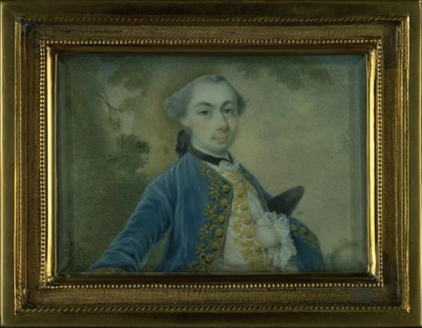John Hesselius painted this watercolor on ivory miniature portrait of Archibald McCall sometime in the mid-18th century. Hesselius, born into a family of artists, created this intimate likeness during a time when portraiture was a key way to convey status and identity. Consider the context of the pre-revolutionary era; the painting reflects the values of the colonial elite. Archibald, with his powdered wig and tailored blue coat, embodies the image of a prosperous gentleman. Yet, these visual markers of status were intertwined with the complex social and political realities of the time. It prompts us to think about the lives and labor that underpinned this prosperity. While Archibald's portrait speaks to individual success, it is also indicative of the larger colonial system. Whose stories are not being told? What are the emotional implications of such elisions? This miniature acts as a looking glass, reflecting the stratified society of early America.