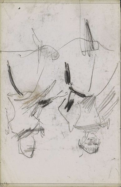 Gerrit Willem Dijsselhof created this pencil drawing, "Studies van vinnen," whose date is unknown. At first glance, the composition, with its stark contrasts of light and shadow, appears to be an exploration into the morphology of fish fins, yet the forms feel like an exercise in abstraction. Dijsselhof's emphasis on line and form suggests a deeper engagement with the underlying structure of the natural world. Through a semiotic lens, we might read the fins not just as biological structures, but as signs pointing to broader themes of movement, adaptation, and the inherent geometry found in nature. The artist is playing with a visual vocabulary that destabilizes the boundary between representation and abstraction. Consider the artist's strategic use of negative space which invites us to contemplate what is not explicitly drawn. This piece operates as a site for philosophical inquiry, questioning our conventional modes of perception and understanding.