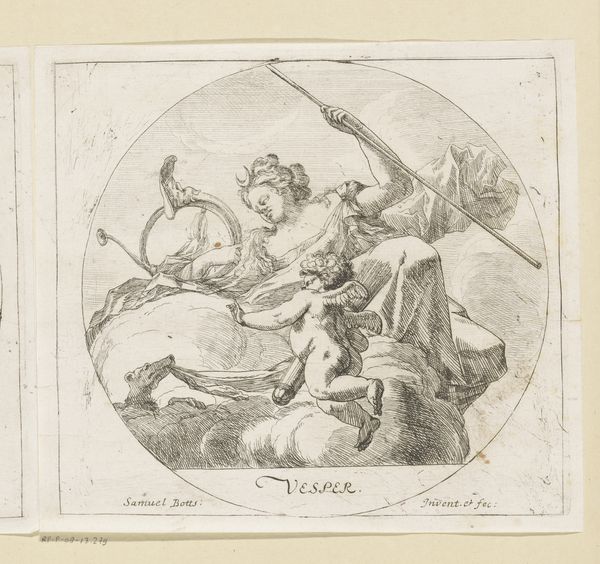 Curator: Here we have a drawing by Samuel Bottschild, made in 1693, titled "Fama en de personificatie van de kunsten". It's currently held at the Rijksmuseum. Immediately I notice it's executed in ink and demonstrates figuration, characteristic of the Baroque style. What are your initial impressions? Editor: Wow, what strikes me is this dizzying, swirling vortex! It's an absolute Baroque explosion, right? Airy yet theatrical, almost a dream. Curator: The medium used—ink on paper—certainly lends itself to the creation of fine lines and intricate details. It appears Bottschild adopted printmaking strategies in this drawing for a more efficient reproduction for distribution of visual idea, no? The choice is economical and allows his allegorical representation to reach a wider audience. Editor: Absolutely. But beyond that, look at the way Fama, that winged figure trumpeting above, dominates the composition, drawing the eye upwards. The swirling cloudscape seems ready to dissipate at any second. She really looks triumphant. I love how precarious yet grand everything feels. Curator: Given its subject, its interesting to note the emphasis Bottschild seems to place on print culture. He appears less focused on singular precious objecthood. The emphasis rather lands on multiplying and distributing both Fama (or fame itself) along with representations of the arts more broadly. This also highlights the workshop’s technical skill with graphic arts. Editor: True, although personally I find it interesting to speculate, knowing the limitations inherent in ink, just how Bottschild captured all this detail. It reminds me that every piece carries its making built into it. It looks almost as if this one grew. Curator: The paper support also bears witness to changes in access and material production practices of that time. These drawings were often meant to disseminate political, religious and social beliefs of powerful patrons to audiences outside the court. Its role within material culture is really what stands out for me. Editor: For me, the most intriguing detail is this whole precarious assemblage ready to collapse at any moment; Fame being so fickle as it is! It feels like it wants to become the kind of fleeting memory to chase your whole artistic life. A wry smile to fame itself perhaps? Curator: Indeed! Understanding the cultural economy within which Bottschild operated certainly enriches how we regard not only the artist himself but also those workshops and laborers instrumental in materializing artworks that visually conveyed ideas and tastes for their time. Editor: I love thinking that those tastes themselves are ever evolving; even something set down in ink still moves. It kind of frees us all up to invent. Thanks for that material view of artmaking.