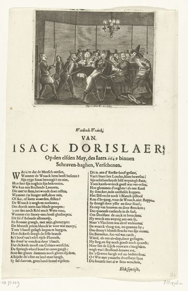 Curator: Here we have an engraving from 1691 titled "The Entrance of King William III into The Hague." Editor: Oh, this print really captures a bustling city scene! I'm immediately struck by the celebratory feel, despite the dense crowds rendered in such fine lines. There’s an impressive architectural backdrop too; it feels quite grand and momentous. Curator: It's the work of I. Baant, published in Amsterdam, depicting William of Orange's arrival in The Hague. As Stadtholder and future King of England, his presence was of major significance. The print itself functions almost as a public record of the event. Editor: Looking closer, I see a tension between the architectural and the human elements. The imposing building looms in the background almost as a symbol of authority. The crowds in the foreground, though, are active participants, not just passive observers. Notice the textual inscription; what can you tell me about its language? Curator: That's an interesting observation about the building's imposing nature, especially juxtaposed with the crowds! As for the text, it contains a poem spoken from the point of view of The Hague itself, personifying the city as a welcoming entity extending hospitality and promising loyalty to William. Editor: A fascinating symbolic gesture! The Hague literally 'speaks' its devotion. One wonders, however, about the underlying cultural need for such public displays of allegiance. Are there elements of apprehension as well as acclaim? Curator: It is definitely a complex tableau. Beyond the pageantry, prints like these played a role in shaping public opinion and reinforcing the authority of the House of Orange. The act of printing and distributing such images made it part of a wider political landscape. Editor: So much is packed into this small image. From a cultural perspective, it underscores how closely interwoven urban identity and political power were at that time. Even a relatively straightforward historical representation conveys so much. Curator: Indeed. It's a valuable window into understanding the public role of art and how the powerful used imagery. Editor: I'm glad we paused to unpack this engraving! There’s far more than first meets the eye; symbols offer powerful insights into historical events.
