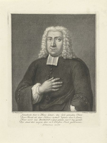Jacob Folkema created this portrait of Johann Gotlieb Pambo, a pastor, using engraving techniques. The open book Pambo holds is not merely an attribute, but a symbol of knowledge and divine wisdom, deeply rooted in Christian iconography. Consider the motif of the open book: it appears across centuries, from illuminated medieval manuscripts to Renaissance depictions of evangelists. Its constant presence underscores humanity's enduring quest for understanding and the sacred act of interpretation. The book, in this context, transcends its physical form to become a vessel of cultural memory, a subconscious trigger for our collective yearning for enlightenment. The weight of tradition is palpable here. It echoes through time, a constant reminder of the cyclical nature of symbols, their adaptation and rebirth within new eras. Folkema's work is not just a portrait; it's a point on the continuum of human expression.