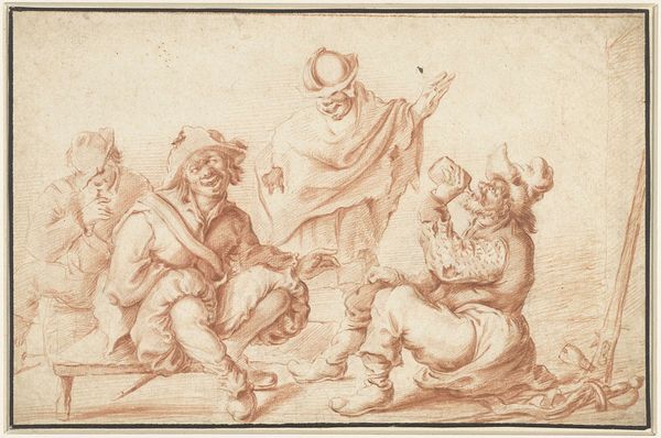 Stefano della Bella created this etching, "Meeting of Dwarves," using metal, acid, and ink. The controlled corrosion of the metal plate is what gives this print its distinctive look. Della Bella would have drawn his design into a waxy ground, then submerged the plate in acid. The longer it soaked, the deeper the lines. This demanded great skill. The resulting matrix was then inked and pressed onto paper, leaving us with the image we see. Looking closely, notice how the varying depths of the etched lines create a sense of volume and shadow. The artist masterfully uses cross-hatching to build up darker tones, giving the figures weight and presence. The line becomes more than just a boundary; it’s a tool for sculpting form and capturing light. Think about the labour involved in this meticulous process and the social context of printmaking. Etchings like this were relatively affordable, making art accessible to a wider audience than paintings or sculptures. The print becomes a medium for social commentary, documenting and perhaps even poking fun at the society of its time. Appreciating the material process allows us to consider how the hierarchies of "fine art" and "craft" play out in this fascinating image.