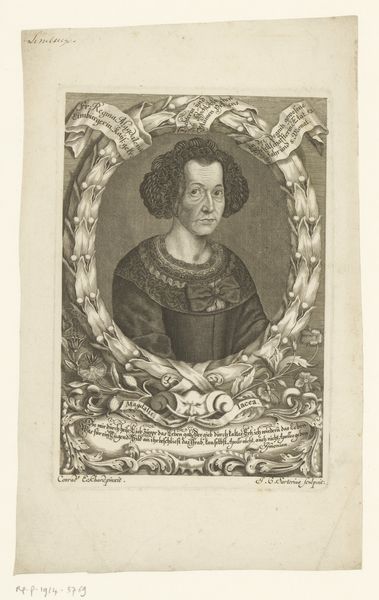 This engraving of Maria Elisabeth Rappolt was made by Christian Romstet around the turn of the 18th century, likely in Germany. It offers an insight into the social conventions around representing women of status during that period. Romstet’s engraving isn't just a straightforward portrait. The oval frame, the Latin inscription, and heraldic symbols elevate Rappolt beyond a simple likeness, underscoring her family's position and intellectual connections. The prominent display of Rappolt's lineage and marital status reflects the importance of family and social standing in that society. The choice of engraving itself, as a reproducible medium, speaks to a desire to disseminate her image and, by extension, her family’s status, beyond a limited circle. Understanding this image requires delving into the visual culture and social structures of the time. Genealogies, local histories, and studies of portraiture conventions would all shed light on the networks of power and influence that shaped its creation. The artwork, therefore, becomes a valuable document for social and institutional historians.