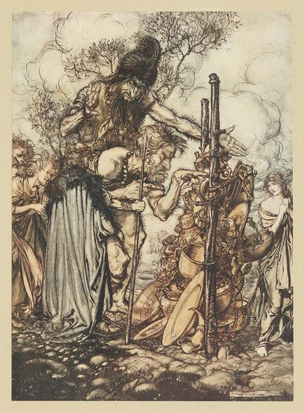 Arthur Rackham's "The Ride of the Valkyries" is made with pen, ink, and watercolor, which were pretty standard fare for illustrators of his time. Looking closely, you’ll notice how Rackham masterfully uses line and wash. See how he renders the frenzied energy of the Valkyries and their steeds with delicate, almost scratchy pen strokes? Then, notice how he adds depth and atmosphere with layers of translucent watercolor washes? The process gives the artwork an ethereal quality, perfectly suited to the mythological subject matter. Rackham's illustration style was incredibly influential. He really elevated the craft of illustration to an art form. He drew from both the fine arts and traditions of printmaking to produce an appealing artwork, thus demonstrating how craft and fine art enrich each other.