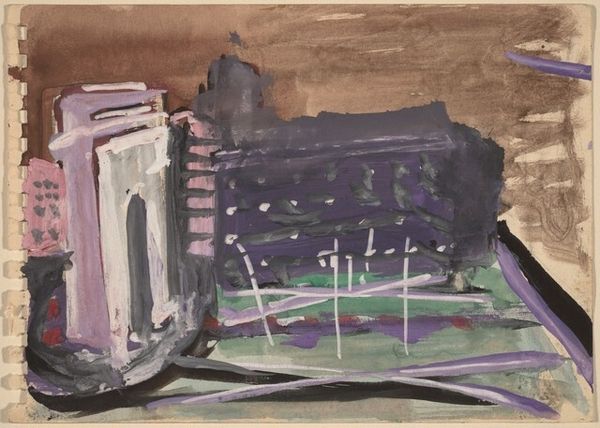 Editor: This watercolor, "Grain Elevators at Weehawken" by John Marin, painted around 1912, feels incredibly ethereal, almost like a memory. The structures are imposing, but the colors are so muted and dreamy. What do you see when you look at this piece? Curator: You know, it’s interesting you say that. To me, it's as if Marin isn't just painting grain elevators but capturing the *idea* of them. The almost vibrating lines suggest a city alive and in motion, and he seems to be pulling back the curtain to expose a feeling. Does it remind you of anything? A childhood feeling or even a fleeting idea? Editor: Hmm, I see what you mean about the feeling. It’s not static; it feels like something about to shift. But I’m used to seeing sharper lines in urban landscapes. Was Marin part of a movement or style that explored this looser interpretation? Curator: Exactly! Marin was dancing with early Modernism, finding poetry in the everyday, but without fully surrendering to complete abstraction. He’s almost giving the architecture a personality through the medium, what with watercolor’s inherent fluidity, and is he being nostalgic, critical, or just fascinated, do you think? Editor: That’s a great question. Maybe all three? He is capturing the industrial landscape with a real sense of emotion. I definitely have a better appreciation for how personal this kind of seemingly detached subject matter could be. Curator: Absolutely, and isn’t that the beauty of art? Taking something like a grain elevator, something so seemingly ordinary, and turning it into a portal to an emotional state. Now I see how nostalgic I was to when visiting New York city, a city which unfortunately I can not visit nowadays, how tragic!