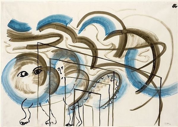 Editor: Here we have Ansei Uchima’s "Insects’ Concert," created in 1960, using mixed-media printmaking techniques. I find its combination of geometric and organic shapes rather striking. What do you make of the abstract symbolism in this piece? Curator: The title alone suggests a specific type of sensory experience – the ‘concert’ implying a collective and perhaps harmonious soundscape. Think about the use of geometric and organic shapes as symbols. Could the geometric forms represent the structures within nature, while the organic shapes capture the living essence of these insects and their world? Editor: That's an interesting angle. So, you're suggesting the artist is trying to find a visual language for the sounds and activity of insect life. Curator: Precisely. Abstraction allows Uchima to move beyond literal representation and tap into the energy and rhythms that constitute the experience of nature. The recurring lines, the strategic placements of black and yellow--what symbolic weight might colors carry for him? Editor: I see your point. The stark contrast perhaps emphasizes the vibrant chaos. What strikes me is that it’s not chaotic at all but controlled. Almost a score... Curator: You're picking up on the music! These visual forms are cultural symbols filtered through Uchima’s experience and intention, carrying layers of meaning connected to how we perceive nature itself. Can you consider, then, the cross-cultural relevance, if any? Editor: I guess insects, regardless of culture, have universal sounds...a shared understanding and universal relevance. Curator: Exactly! Seeing how Uchima employs visual elements to evoke specific ideas about sound allows us to interpret and connect across different cultural contexts. I wonder if other entomologists shared Uchima’s observations? Editor: I never thought of it that way before! Now I am really considering the universal sound, in nature, through Uchima’s abstraction.
