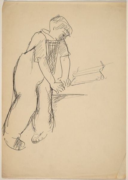 Curator: This is "Study of a Boy Fishing" by John Varley, part of the Tate Collections. Editor: There's an innocence to it, isn't there? A very spare, almost childlike rendition. He seems lost in concentration. Curator: Indeed. Varley, known for his landscapes, was part of the Old Watercolour Society, which shaped British art institutions. This study hints at his broader exploration of British identity. Editor: Fishing itself is a loaded image, a symbol of patience, nature, perhaps even fate. The boy's downward gaze underscores that focus. Curator: Varley's economic use of line allowed him to study and suggest movement and form, something the Society promoted. It served the public's growing interest in the natural world. Editor: In a way, he captures a key moment in childhood: the absorbing power of simple observation. Curator: I agree. It's a remarkable study in its quiet simplicity. Editor: It makes me think about the enduring cultural significance of these kinds of pastimes.