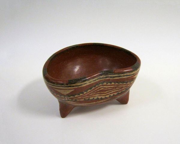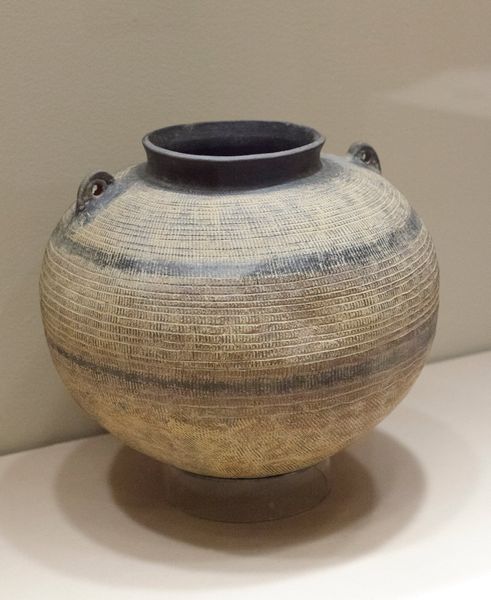 This jar was made by Yasuda Zenkō, but when exactly I couldn’t say. What interests me is how these horizontal bands of colour – off-white, light brown – were applied. It feels like a layering process, the artist building the jar in stages. The surface of the jar is wonderfully textured, like tree bark or maybe the surface of a far-off planet. The paint isn’t thick, but there are many layers, creating depth. Look closely, and you’ll see tiny variations in colour and tone. These imperfections are what make it feel handmade, human. Notice how the bands aren’t perfectly straight? They waver and wobble, like water. The whole jar has a kind of softness. It reminds me of Agnes Martin’s grid paintings, the way she used subtle colour variations to create a sense of calm and quiet. And just as with Martin, this jar invites you to slow down, to contemplate the beauty of imperfection. It’s a reminder that art is always an ongoing conversation, a process of exchange and discovery.