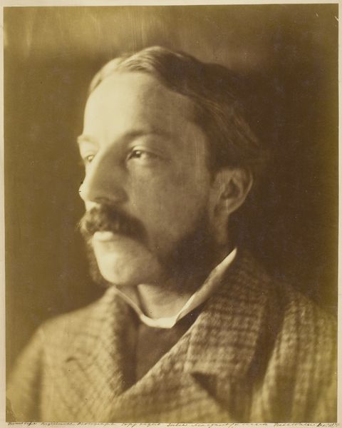 Editor: Here we have John H. Garo's "Untitled (portrait)" from the Harvard Art Museums. Looking at the sepia tones and the man's formal attire, I'm curious about the social context of portrait photography at the time. What can you tell me about this image? Curator: Consider Garo’s use of photography, a relatively new medium at the time. How does this influence the commissioning and consumption of portraits compared to painting? Was it about accessibility, class, or something else? Editor: It makes me think about who had access to commissioning portraits, maybe this was a step towards democratizing image-making? Curator: Precisely! And how does the mass production of photographs affect our understanding of labor and artistry in portraiture? Was Garo's work challenging traditional notions of art? Editor: That's something I hadn't considered! Thanks for helping me think about this artwork in a new way.