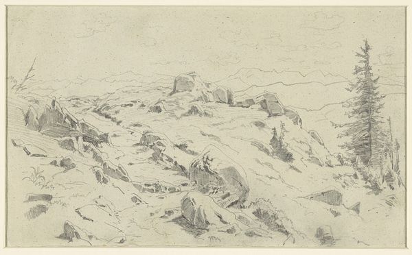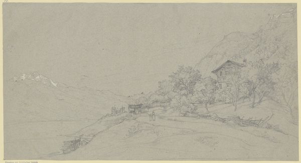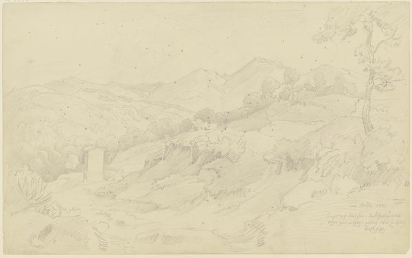 This drawing, by Ludwig Metz, captures Civitella – now Bellegra – with delicate pencil strokes. The soft gradations and subtle tonal shifts construct a tranquil, almost ethereal landscape. The composition invites a formal exploration of depth and perspective. Metz employs a horizontal format, layering space through the receding hills and valleys. The foreground is loosely defined, allowing the eye to drift towards the more articulated forms of the central hill, crowned with what appears to be the town itself. Light plays an interesting role. It defines the contours of the land while also flattening the image, creating a tension between the illusion of three-dimensionality and the two-dimensional surface. Consider how the artist destabilizes our sense of spatial certainty. The pencil lines, while descriptive, maintain a certain ambiguity, resisting a singular, fixed reading. This openness reflects a broader engagement with the fluidity of perception and representation. We are reminded that art is not merely a mirror reflecting reality, but an active construction of meaning, perpetually open to re-interpretation.