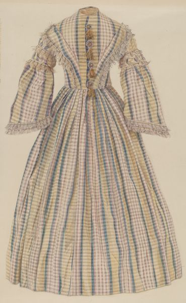 Hans Mangelsdorf made this watercolour painting of a child’s dress, sometime in the 20th century. It's a delicate, almost ghostly, rendition of what looks like a formal dress, maybe for a christening or some other special event. The palette is super restrained, mostly whites and creams, which gives it an ethereal feel. The way Mangelsdorf handles the watercolour is interesting. It's not about hiding the process; you can see the washes, the layering, the slight imperfections. The texture is almost palpable. Look closely at the lace trim – the detail is incredible, but it's also kind of soft and blurred, like a memory. There's a particular spot, right at the shoulder, where the lace seems to dissolve into the fabric, and it's just beautiful. It makes you think about how clothing carries history. This piece reminds me of some of Agnes Martin's quieter works, with that same sense of delicate restraint. Both artists show us how something can be so quiet, yet so full of feeling. Art is an ongoing conversation, a call and response across time.