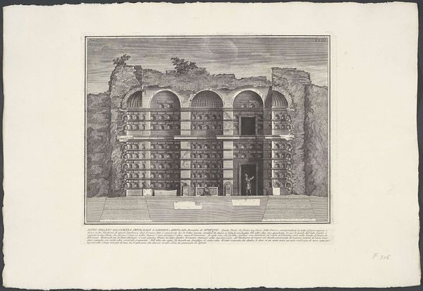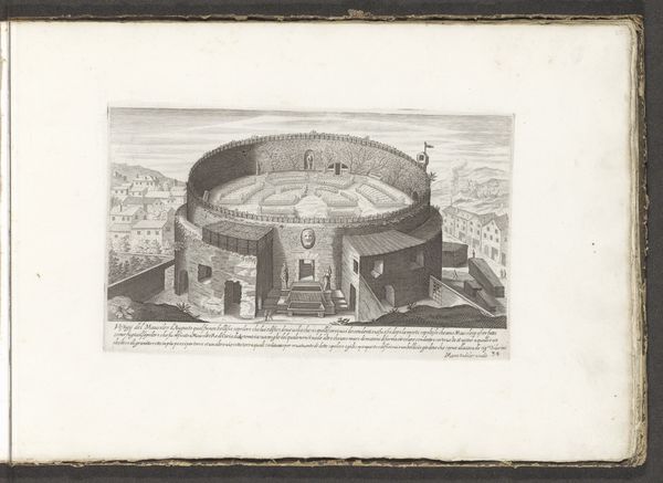 This etching showing the Mausoleum van Augustus was made in Rome by Étienne Dupérac. The fine lines were achieved by incising an image onto a metal plate, likely copper, in preparation for printing. The image shows us the immense, ruined cylindrical structure, with a formal garden planted on top. Consider the labor involved in such an enormous architectural feat, requiring teams of workers to quarry, transport, and assemble massive blocks of travertine stone. The etching itself records the mausoleum’s state of decay, transformed from a symbol of imperial power into a ruin overtaken by nature. Dupérac's printmaking captures this transformation, using skilled labor to depict the effects of time and neglect on a grand monument. It prompts us to reflect on the cyclical nature of power, and the relationship between human ambition and the forces of nature, all through the careful manipulation of material and process.