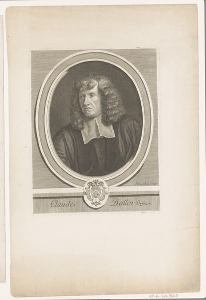 Curator: This portrait is of Camille d’Hostun, duc de Tallard, dating back to 1704, and was rendered by Johann Martin Bernigeroth. I find him a touch melancholic. His gaze seems distant. Editor: There's an undeniable gravity. But note the stagecraft: the slight theatrical lighting and costume, even a suggestion of confinement with that stone window in the background. Bernigeroth makes Marshal Tallard a figure of both authority and, perhaps, constraint. Curator: Indeed. The very meticulousness of the engraving gives a kind of stoic presentation of power. We know Bernigeroth worked primarily with copper engravings—can you see a story in that material choice? It really underlines something for me. Editor: It highlights the process of crafting public personas in the Baroque era, certainly. Printmaking allowed images of powerful figures like Tallard to circulate widely. Here’s a general in captivity by Marlborough and still projecting nobility; talk about a brand strategy! Curator: Exactly! The rigid control and exacting craftsmanship also speaks volumes. Was engraving especially effective as a way to project that kind of control? And did its accessibility lend itself to the age of empires in the 17th century? Editor: Engravings provided that kind of easily reproduced image of empire but at a price of distorting other narratives. They reinforced visual hierarchies across nations. Consider also that his captivity could itself have boosted the circulation of his image; it allowed friends to display sympathy and enemies a type of visual "trophy". Curator: It all seems to come together and the story feels like a house of cards! So beautiful and well done, but… precarious! Editor: It reveals the way in which image-making participated so directly in power and its constant negotiation, from fashion to warfare, doesn't it? Curator: Yes, truly! Now, every time I gaze at this, I will see those layers interweaving more profoundly. Thank you!