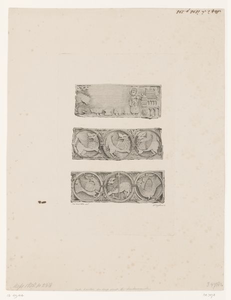 Curator: Hermann Kestner’s “Design Illustrating an Excursion to the Countryside,” created around 1839. It's currently housed at the Metropolitan Museum of Art. Editor: Immediately, I'm struck by its ephemerality. The wispy lines, the faded tone of the paper...it feels incredibly delicate. Curator: Indeed. Kestner's sketch seems to encapsulate the yearning for simpler times, the arcadian dream of rural escape that was so popular then. We have these carefully arranged vignettes in circular frames. Each circle functions almost as a memory bubble containing snapshots of leisure. Editor: The use of pencil, ink, and wash on toned paper certainly speaks to this longing, this desire to hold onto fleeting moments. I'm curious about the availability and cost of these materials; who would have been commissioning, purchasing, or creating artwork of this nature? What does access to such "luxury" say about social stratification at the time? Curator: It's likely the piece was intended as a preparatory drawing, perhaps for a print or a more elaborate artwork. The symbols point toward leisure, prosperity, and social cohesion. Notice how he represents an abundance of scenery inside these framed portals that look as though each captures different events in time? The cultural aspiration is undeniable. Editor: Precisely, and the means to represent these ideals through specific, intentional practices and the consumption of "quality" drawing instruments becomes inherently ideological. Who has access to idyll? Curator: And yet, paradoxically, there's a fragility to this ideal. The pencil lines are faint; it’s all quite tentative, not fully realized. Maybe that suggests an underlying awareness of the precariousness of such idealized lifestyles. Editor: That tenuousness fascinates me. It implies both a reaching for refinement but also acknowledges its accessibility issues given the socioeconomic infrastructure of the era. What does “idyllic” labor actually look like, who is profiting, and what raw materials go into the work? Curator: A poignant reminder that beauty, perhaps like most other things, carries a social fingerprint. Thank you for your time! Editor: Fascinating artwork. I look forward to seeing what other interpretations we find together!