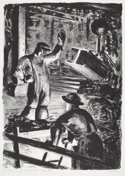 Curator: Jack Butler Yeats's "The Champion" at the Harvard Art Museums has a captivating, almost dreamlike quality. Editor: It's melancholy, isn't it? The blues and greens… It feels like a memory fading, someone running from something, or towards something, maybe the same thing. Curator: The composition certainly directs our attention to the figure in motion. The watercolor is loosely applied, lending a sense of urgency. He looks determined. Editor: Is he though? Or is he being chased? The two figures to the left seem to be watching him. I wonder what they're thinking. There's a narrative here, but it's just out of reach. Curator: It's the suggestion of a story, I think, more than a fully fleshed-out one. Yeats leaves so much open to our interpretation. Editor: Exactly. It's the incompleteness that draws me in, the unspoken anxieties and hopes projected onto this anonymous runner. This champion. Curator: Anonymity being the point, I suspect. He becomes everyman, our every fleeting ambition. Editor: Yes, and that muted palette—it’s like a sigh. A champion for a moment, then back into the shadows. Quite beautiful, really.