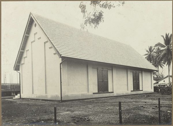 Curator: We’re looking at a photograph titled "Church and Tree" by Dorothy Norman, created around the 1930s. It's a striking black and white image. Editor: My initial response is one of starkness, even isolation. The deep blacks frame a church facade that seems deliberately flat, almost like a stage set. Curator: That flatness is interesting. The image indeed reduces depth, foregrounding the formal interplay between light and shadow, particularly as they define the geometry of the church. Consider how the solid mass of the tree contrasts against the more linear elements of the building, directing the viewer’s focus to specific zones in the image. Editor: And the framing device created by the tree! It is heavy, almost ominous, overshadowing a place that's supposed to represent refuge. What's being said, or perhaps not said, about the church's role during the Depression era, with that foreboding foliage blocking our entry, one might say? Curator: That socio-political lens gives new perspective. Looking at it more simply, the photograph utilizes compositional strategies that feel both deliberate and innovative. The facade itself repeats strong triangular forms which gives the structure almost graphic quality against the slightly textured sky, Editor: One can feel Norman’s potential ambivalence—showcasing the architectural precision while subtly hinting at its potential disconnect from the community, if read using that era's social lens.. It is quite potent. Curator: An excellent way to understand it! Norman expertly blends aesthetic appreciation with historical undertones, producing a work where geometry and social reality subtly intertwine. Editor: Indeed! "Church and Tree" becomes more than a composition of light and form; it evolves into a study of cultural symbols embedded in the stark simplicity of a photograph.