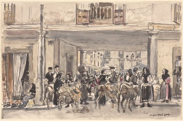 George Hendrik Breitner captured this watercolor painting of a flower market in Rotterdam. The crowded marketplace symbolizes trade and community, echoing bustling scenes found throughout art history. Note the figures in the windows, which appear like silent observers, akin to the watchful eyes in Renaissance portraits. This motif recurs in Dutch Golden Age paintings, symbolizing vigilance and awareness. Consider the dog in the foreground, a symbol of loyalty since ancient times, often seen in domestic scenes to evoke warmth and familiarity. These symbols have deep roots, evoking subconscious connections across cultures. Breitner's Rotterdam market transcends a mere depiction of a place; it’s a confluence of symbols echoing through time, engaging us on a profound, emotional level.