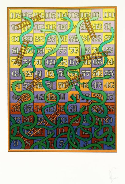 Curator: Immediately, I’m struck by the grid-like composition—it feels at once meditative and strangely systematic. Editor: Indeed. We're looking at Michael Corr’s "Untitled (mosaic of Buddha images)" housed here at the Harvard Art Museums. Its dimensions are roughly 49 by 34 centimeters, and it features serially produced images of the Buddha. The materiality feels quite interesting. Curator: The repeated Buddha images, each a slightly different color, printed in what looks like a very manual process. The hand of the artist is clearly present in this seriality, this speaks to ideas of labor. Editor: Absolutely. It raises questions about mass production and commodification of spiritual symbols within capitalist structures. The labor of creating each image, combined with the almost pixelated effect, reflects broader societal tensions. Curator: And it highlights how readily available, or not, these images are to different demographics. The process directly relates to ideas surrounding accessibility. Editor: It also prompts a dialogue around cultural appropriation, or perhaps appreciation, in Western art contexts. What does it mean to replicate these images so many times, even with slight variation? Curator: I find myself thinking about the means of distribution. Was this intended for a mass audience? Is it a singular, unique object, despite its serial elements? Editor: Ultimately, this work encourages us to consider both the spiritual and the material contexts of image-making. Curator: It really gets me thinking about the artist’s hand, and the role of process in meaning.