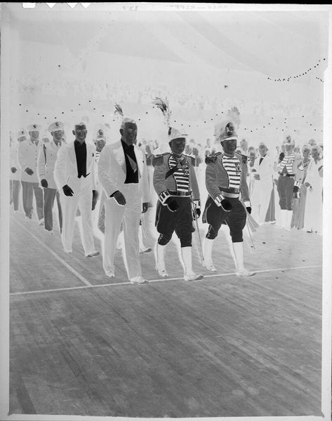 Editor: This photograph by Jack Gould, titled *Untitled (line of carousel horses)*, is intriguing. The horses seem frozen, almost ghostly, and I'm drawn to their materiality. What can you tell me about it? Curator: I see a compelling tension between the manufactured object and the artistic representation. Consider the labor involved in crafting these horses, their original purpose as entertainment, and now their capture on film, a new mode of production. How does this shift in context alter our perception of them as objects of consumption? Editor: That's a great point, it really makes me reconsider how they were originally intended to be viewed. Thank you. Curator: Indeed. Thinking about the tangible aspects of the carousel and the photograph deepens our appreciation.