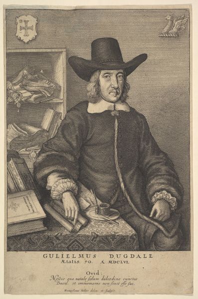 Editor: Here we have Cornelis van Noorde's "Portrait of Johan van Clarenbeek," created in 1791 using chalk. I'm immediately struck by the artist's attention to detail, especially in the ruff and the subject's subtle expression. What stands out to you, particularly regarding its formal elements? Curator: The formal properties of the drawing are quite compelling. Note the artist's use of line, especially in defining the contours of the face and hat. How would you describe the quality of those lines - are they smooth, broken, assertive, hesitant? Consider too how the artist models form through subtle variations in shading. Where do you see the most effective use of light and shadow? Editor: I'd say the lines are fairly smooth, creating a sense of realism but also a certain softness. The light and shadow around the eyes and cheekbones definitely add depth. Do you see any specific formal techniques at play? Curator: Absolutely. The contrast between the dark hat and coat and the lighter face immediately directs the viewer's gaze. Consider, also, the strategic placement of highlights, like the small dashes of white in the eye, bringing out his face with such soft lighting. The careful orchestration of these visual components reveals much about Noorde's technical skill and choices regarding what and how the viewer perceives the portrait. Editor: It’s fascinating to observe how all the elements work together to emphasize certain features of the composition! Thanks. Curator: Indeed. A keen awareness of an artist's manipulation of formal elements can enrich our experience and understanding.