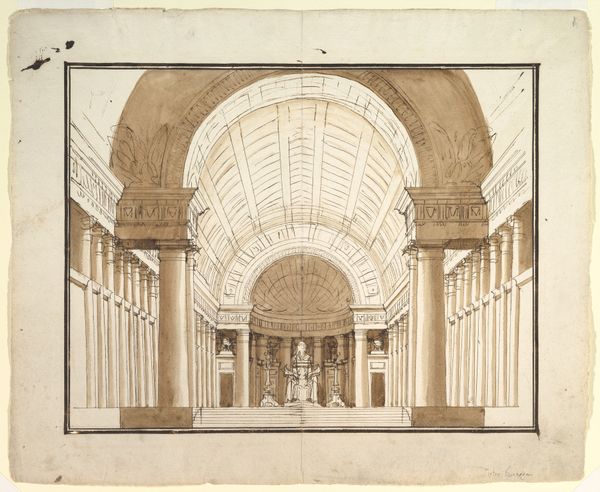 Giuseppe Galli Bibiena created this stage set design with graphite in the 18th century. Envision a grandiose stage set dominated by a centralized villa, its cupola reaching towards the heavens. The columns, arranged in perfect symmetry, echo forms found in ancient temples, symbols of stability and order. Notice how this architectural motif reappears through time: from the ziggurats of Mesopotamia, where each level brought one closer to divinity, to the Baroque palaces which served as stages for displays of power. Consider the circle of the dome, a symbol of totality that can be seen reflected in Byzantine mosaics and Renaissance paintings. These images, filled with cosmic significance, trigger our collective memories of the eternal and the divine, stirring deep, primal emotions. This cyclical return to the same forms—columns, domes, symmetry—reveals how certain archetypes persist, adapting themselves to new eras and new emotional necessities.