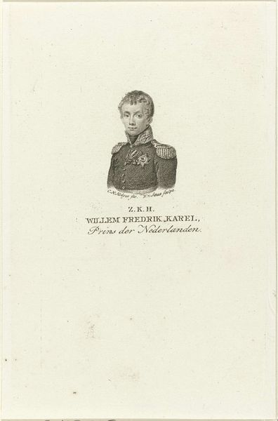 Editor: This is "Portret van Frederik, prins der Nederlanden," a print made by Willem van Senus in 1815. It’s located here at the Rijksmuseum. It has the look of an old engraving, maybe even a pencil sketch. The young prince looks so serious. How should we interpret this portrait? Curator: Given the historical context, it is impossible not to read this portrait through a political lens. It was made during the rise of nationalism, shortly after the Napoleonic era, correct? And Neoclassicism was used as propaganda by those in power. Editor: Yes, that’s right. Curator: So, this image presents Frederik not just as an individual, but as a symbol of restored Dutch authority. What do you notice about the way he’s presented in relation to contemporary ideals? Is it romantic, even? How does it contrast to, say, a later photograph or painting that you may have seen? Editor: He appears very composed, very proper. The clothing and the medals suggest power and order. It definitely isn’t a photograph where one hopes to capture some essence or deeper expression, which did not exist back then anyway. Curator: Precisely. Consider the engraving technique, which lends itself to sharp lines and precise detail, reinforcing the impression of control and rationality associated with Neoclassical art and those seeking political leverage from this approach. Do you believe the artist sought to highlight class structures in any way? How are people from underprivileged backgrounds depicted during this period, in contrast? Editor: Well, they most certainly aren't! He is placed in the context of reclaiming power; class difference is definitely magnified here. I never thought about that. Curator: It’s about situating Frederik within this framework of power, a calculated attempt to reinforce societal norms during a pivotal moment in Dutch history. Thinking critically about art means understanding how those dynamics continue to affect society now. Editor: Thanks, it really gives me a lot to think about.