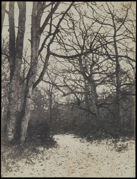 Constant Alexandre Famin made this photograph, "Man in a Forest Landscape," sometime in the mid-19th century. It’s a salt print, an early photographic process yielding a soft, slightly faded effect, achieved by coating paper with silver nitrate and sodium chloride, then exposing it to light through a negative. The resulting sepia tones give the forest an air of timelessness, but the process itself was very much of its time. Photography in this era was a blend of art and chemistry, a craft demanding meticulous preparation and skillful execution. The salt print, while simpler than later methods, still required a deep understanding of materials and their interactions. Consider the labor involved: preparing the chemicals, coating the paper, carefully timing the exposure, and then fixing the image. In a way, the photograph is as much a record of this labor as it is of the forest itself. This reminds us that even seemingly straightforward images are the product of complex technical and social processes.