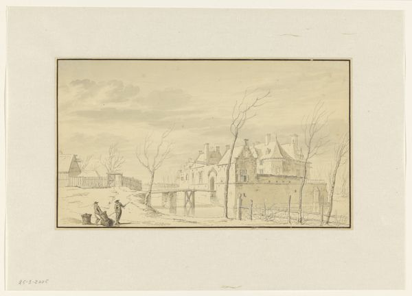 Here is a sketch made by Adrianus Eversen, titled "Gezicht op een straat." Observe the stark architectural lines and the implied absence within this street scene. The gabled roofs and the sturdy walls of the buildings suggest a sense of domesticity and enclosure. Yet, the emptiness of the street evokes a feeling of solitude. Think back to the Roman concept of the 'genius loci'—the protective spirit of a place. Here, the 'genius loci' seems dormant, veiled by a melancholic stillness. Consider how similar architectural motifs appear in Dutch Golden Age paintings, where domestic scenes often symbolize moral virtues and societal order. However, in Eversen's rendering, this order seems disrupted, replaced by a haunting quietude. The stark lines and lack of human presence stir a deep, subconscious yearning for connection and vitality. It is in this cyclical return to archetypal themes, charged with new emotional resonance, that we truly grasp the enduring power of images.