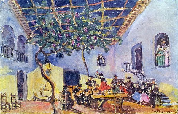 Editor: So, here we have Nicolae Darascu's "Tulcea Square", an oil painting that seems to capture a bustling marketplace. I'm immediately drawn to the artist's visible brushstrokes and how they give the scene a sense of movement. What do you see in this piece? Curator: I notice Darascu’s emphasis on the labour involved in this marketplace. Observe the people depicted - they're not merely picturesque figures, but active participants in a network of exchange and production. How do the materials of the market, the goods being bought and sold, reflect the local economy and social hierarchies of Tulcea at the time? Consider the artist’s materials, too – oil paint, a commodity in itself, used to depict the commodities changing hands. Editor: That's fascinating, I hadn't considered the materials in that light. It makes me think about the artist's choice of plein-air painting. Does the act of painting outdoors, directly in the environment he's depicting, further connect the artwork to the actual labour and environment of the square? Curator: Precisely! Painting en plein air involves a very specific type of physical labour. Darascu isn't just representing a scene, he's actively engaging with it, responding to the light and atmosphere, contending with the challenges of working directly within the social and economic space of the market. This process is inextricably linked to the painting's meaning. What kind of challenges and interactions do you think that presented, working in that location? Editor: Thinking about it, the visible brushstrokes, as I mentioned earlier, now seem less about aesthetics and more about the immediate, hands-on process of capturing the scene, influenced by the very environment he’s painting. Curator: Exactly. We see the means of production, from the marketplace goods to the artist’s application of paint, all intertwined in this depiction of Tulcea Square. Editor: That connection between materials, process, and social context has really shifted how I see this painting. Thanks! Curator: Indeed! Analyzing the labour and materiality within and surrounding an artwork offers new avenues to interpret both the work and its world.