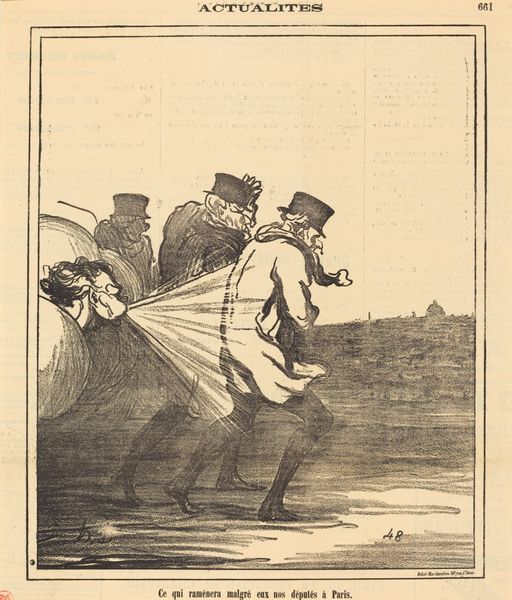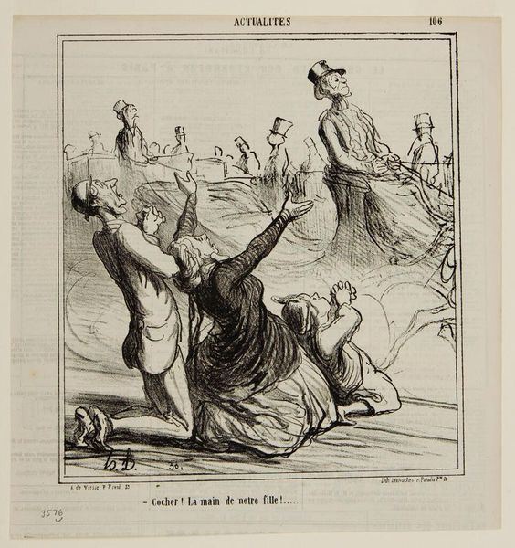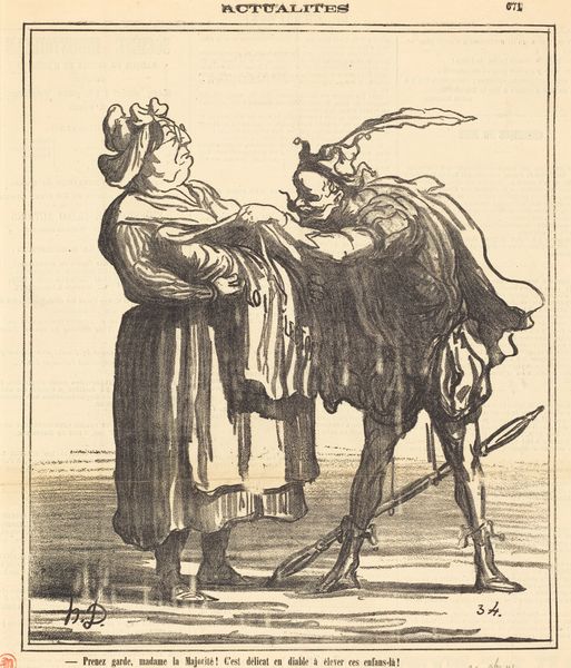 Honoré Daumier’s lithograph presents us with potent symbols amidst a field of crosses. Here, the figure of Paris, draped in classical garb, gestures towards a conservative gentleman. This classical symbol is a conscious echo of antiquity, reborn in revolutionary France to embody freedom and reason. The field of crosses, a stark symbol of death, reminds us of the ever-present weight of history and sacrifice. Note the protective gesture of Paris, her arm outstretched in a pose reminiscent of ancient depictions of peace, a motif we see echoed through Renaissance art, notably in Raphael's frescoes, connecting to our own subconscious need for protection. Consider how this classical figure is reimagined here, now intertwined with contemporary political critique. It highlights the cyclical nature of symbols, perpetually resurrected to address new anxieties and aspirations. This image reflects our collective memory and the recurring human drama between progress and tradition, resonating within us, sparking profound contemplation.
