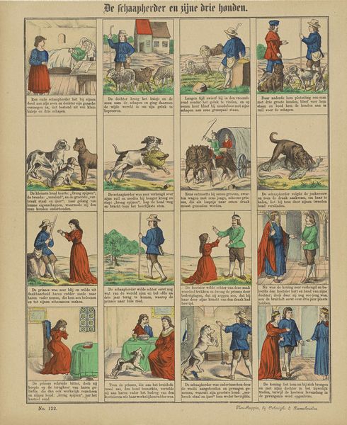 Here is your audio guide description: Oehmigke & Riemschnieder's print, titled "The Fairytale of the Land of Cockaigne," visualizes a 16th-century European fantasy of a land of plenty. The image, divided into sixteen vignettes, illustrates a world where food and drink are abundant and freely available, suggesting a critique of the social inequalities of the time. Each scene reflects aspects of wish fulfillment, from houses made of cake to roasted fowl flying directly into one's mouth, all reflecting a world free from labor and scarcity. This ties into historical anxieties about class and access to resources, envisioning a space where traditional social hierarchies are upended through the power of imagination. Visually, the print balances the allure of indulgence with an underlying sense of absurdity. The Land of Cockaigne is a place where the conventional rules of society and economics do not apply, yet it prompts us to consider the real-world implications of such an existence. What does it mean to have everything we desire without effort or consequence? This print invites us to reflect on our own desires, and the systems of labor and value that shape our understanding of them.