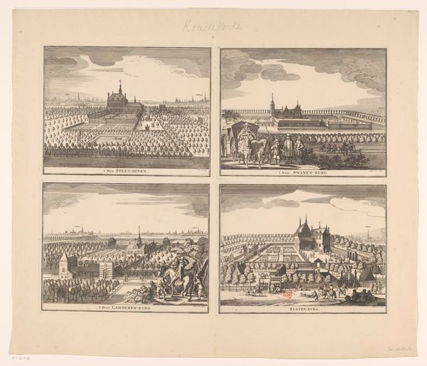 This print, De Kleine Hagen, was made in the Netherlands by Christiaan Hagen, sometime before 1707. It's made from etching, a printmaking technique using acid to corrode a design into a metal plate. Hagen skillfully captures the architectural landscape of his time. The linear precision of the etching brings out the details of each building, from the grand churches to the sturdy city gates and windmills. Look at the clarity with which Hagen depicts the facades, noting the texture of the stone and the angle of the light. The printmaking process allowed for the mass production and distribution of images, reflecting the burgeoning culture of commerce and consumption in the Dutch Golden Age. It also speaks to the skilled labor involved in creating these images, from the artist's initial design to the craftsman's execution of the etching process. Considering the materials, process, and social context encourages us to rethink the boundaries between art and craft and to appreciate the labor and techniques that bring an artwork to life.